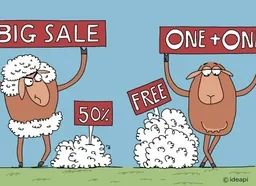 "됐소. 이 가게는 양모를 사면 우유를 그저 준다고 했소"